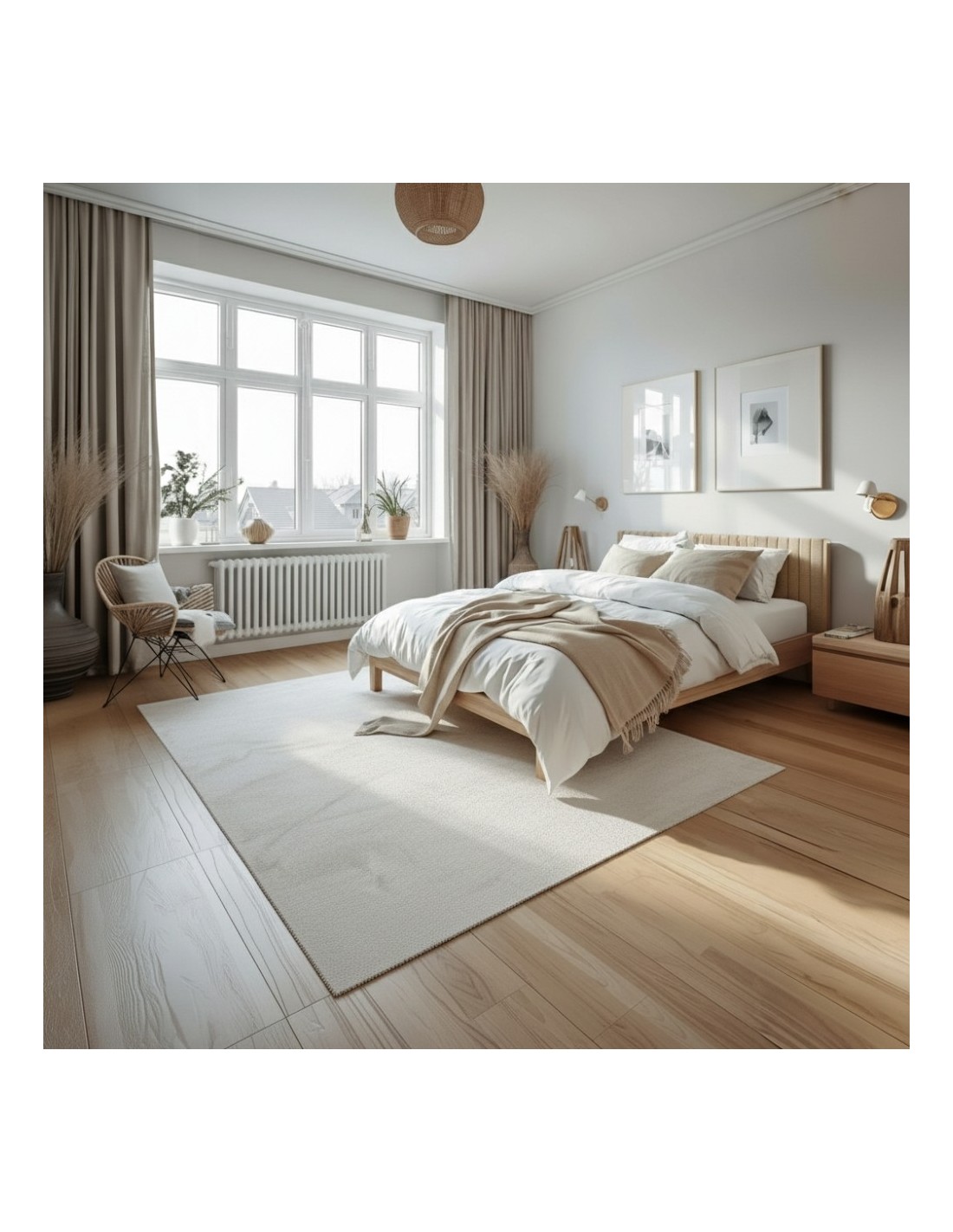 La alfombra Velvet Blanco aporta un toque de calidez y sofisticación a cualquier estancia. Su diseño liso y su textura aterciopelada hacen de ella una opción ideal para salones, dormitorios o espacios de descanso donde el confort es protagonista.