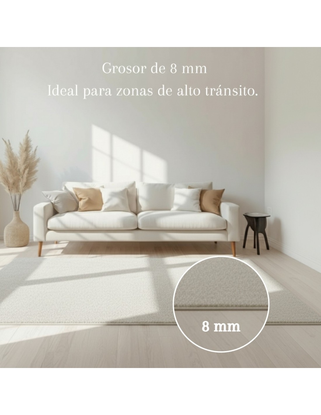 Con una altura de pelo de 12 mm, ofrece una sensación agradable al tacto y una pisada mullida, manteniendo al mismo tiempo una gran facilidad de limpieza y compatibilidad con robots aspiradores.