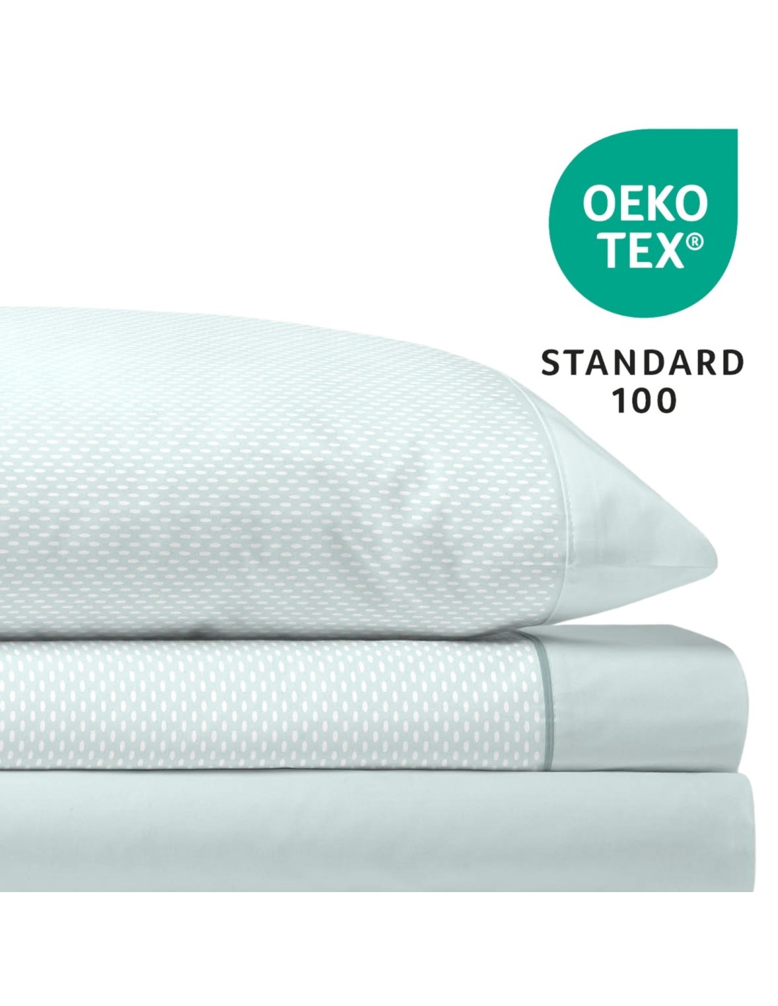Juego de sábanas de 3 piezas confeccionado en 144 hilos 48% algodón y 52% poliéster. Microestampado minimalista elegante disponible en Menta, Lino y Azul. Suaves, resistentes y fáciles de planchar.