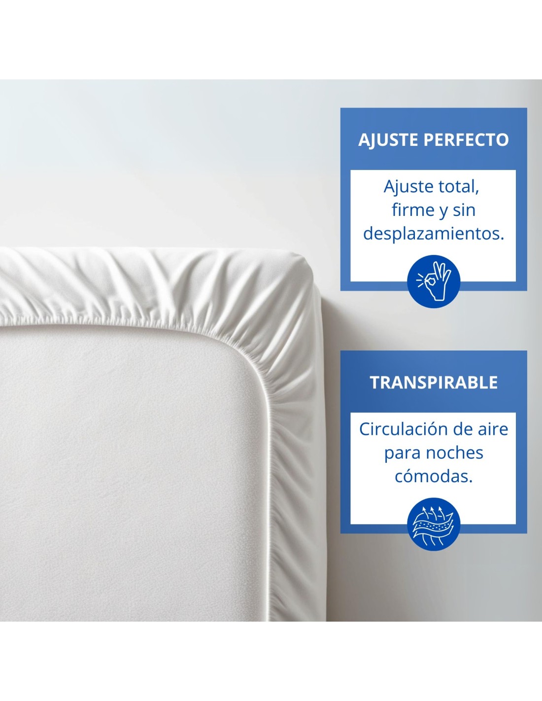 Sábana bajera impermeable y transpirable de color blanco. Protección y frescura para tu colchón.